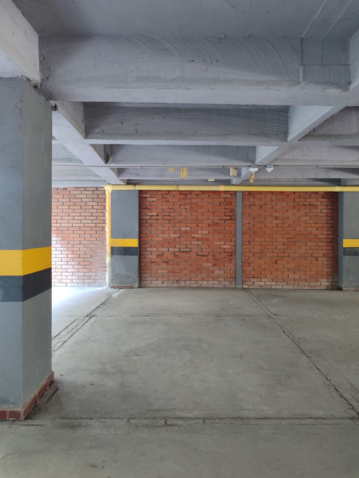 El edificio es de tres pisos, en el primer piso están los parqueaderos, uno por cada apartamento, en los otros dos pisos, hay seis apartamentos en cada piso, uno de ellos es de 45 m² y los demás son de 50 m²