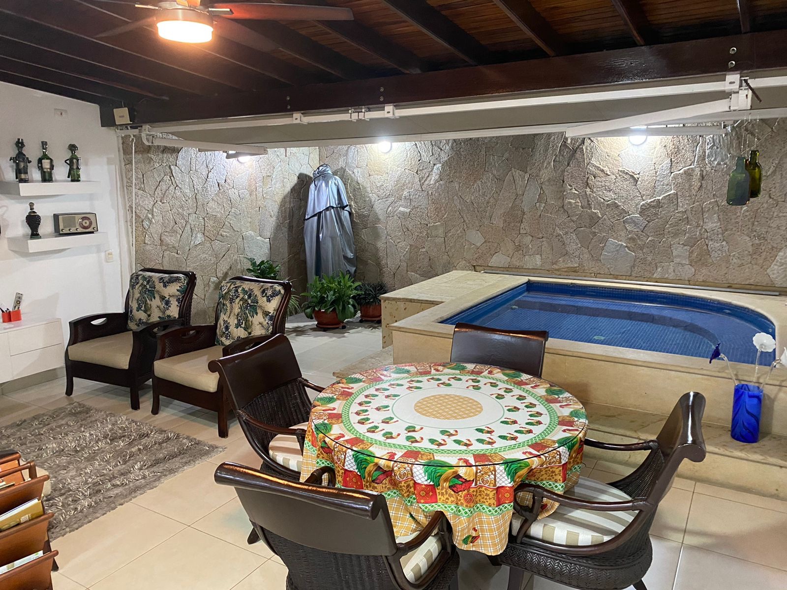 En el primer piso, están parqueadero para dos vehículos, cocina, sala, comedor, pieza para servicio , jacuzzi.